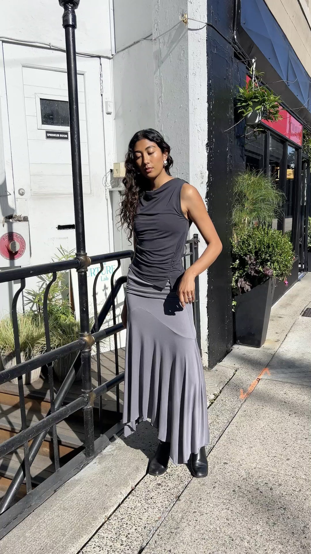 The Oceane Skirt is designed with a softly draped handkerchief hem for effortless movement. The ruched elastic waist creates a flattering, sculpted shape in a midweight jersey knit.